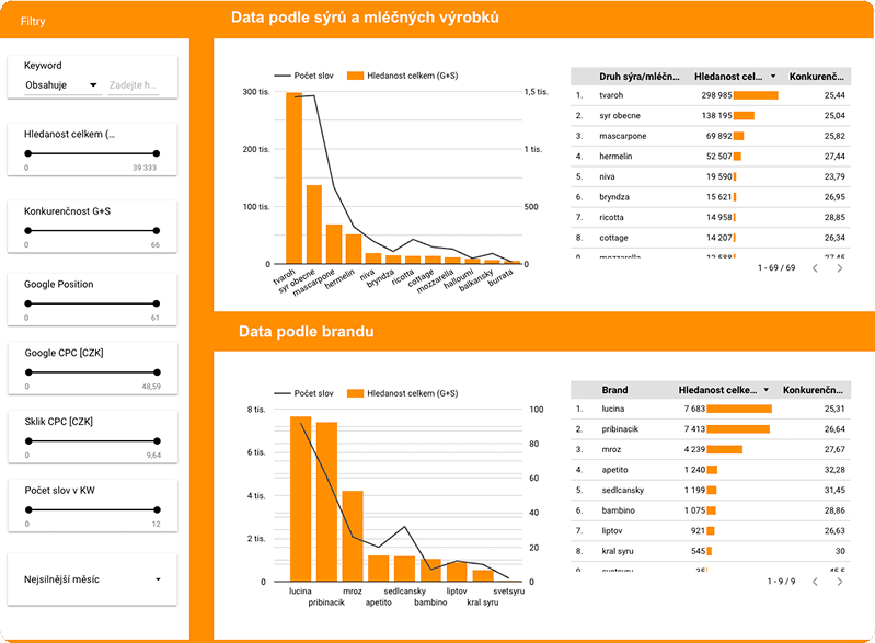 Nejen seznam slov. Přesně vidíte, co vaši zákazníci hledají, kdy to hledají, a jak tato klíčová slova rovnou rozřadit do ideální SEO struktury webu. Naše analýza ukáže, o čem psát a jak optimalizovat.