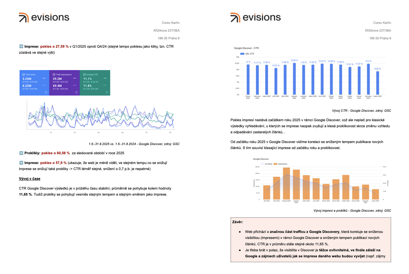 Propad návštěvnosti neponecháme náhodě. Ověříme techniku, obsah i konkurenci, potvrdíme hypotézy a navrhneme konkrétní kroky, jak organickou návštěvnost vrátit zpět.