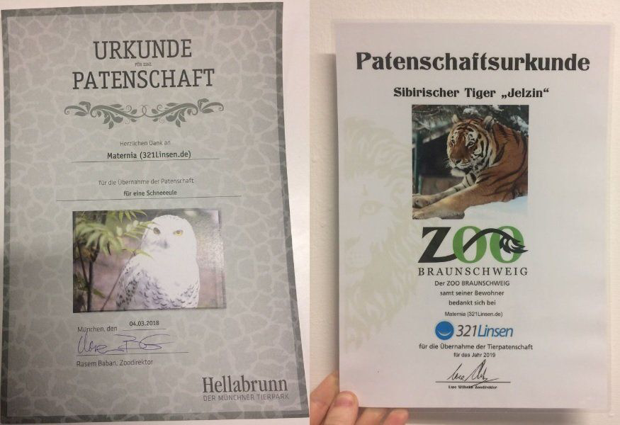 Pro 321linsen.de jsme adoptovali sněžnou sovu a sibiřského tygra