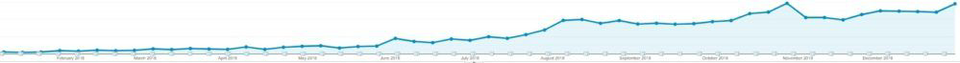 Stoupající návštěvnost jednoho z článků po nasazení na web, celkem se jedná o téměř 7 500 návštěv za půl roku. Vývoj má i nadále stoupající tendenci.