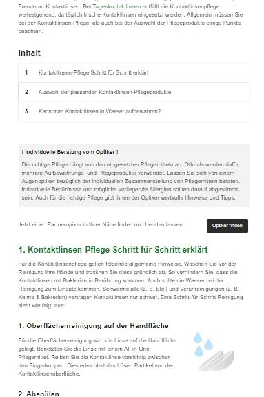 VašeČočky.cz se na spolupráci domluvily s optometristou Danielem Szarvasem, který jim pomáhá verifikovat informace v článcích a upevnit jejich pozici na vysoce konkurenčním trhu s kontaktními čočkami a brýlemi. A pokud čerpáte informace do článku z odborných pramenů třetích stran, zmiňte své zdroje a odkažte na ně. Nutno podotknout, že webu 321linsen.de se vyhnul i srpnový tzv. Medic update Googlu, který se zaměřoval právě na YMYL weby.