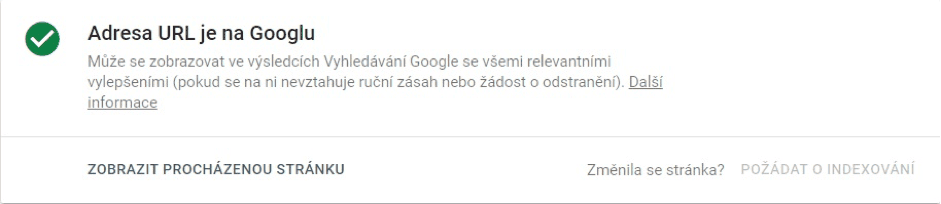 - Objeveno – momentálně neindexováno: Google stránku našel, ale dosud ji neprošel.