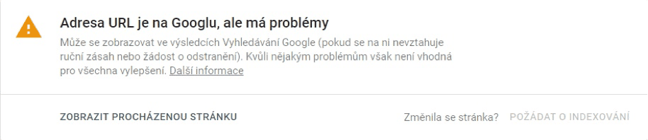 Adresa URL je na Googlu, ale má problémy