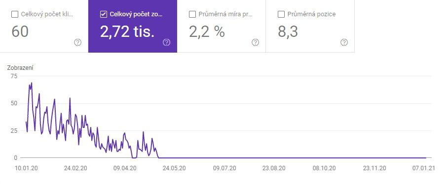 - Podívám se na graf, kdy se stránka přestala indexovat.