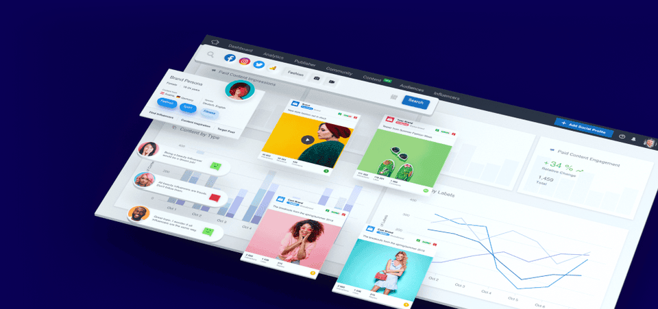 Tato platforma má rovněž velmi dobře zvládnutý workflow, co se týče influenceringu. Umožňuje automatickou detekci vhodných influencerů pomocí AI. Řadí je dle témat, například „travel/sport/fashion“, poskytuje statistiky followerů a jejich interakcí. Umožňuje zobrazení předchozích spoluprací influencerů, a to na základě veškerých brand mentions, které kdy měl influencer na svém profilu.