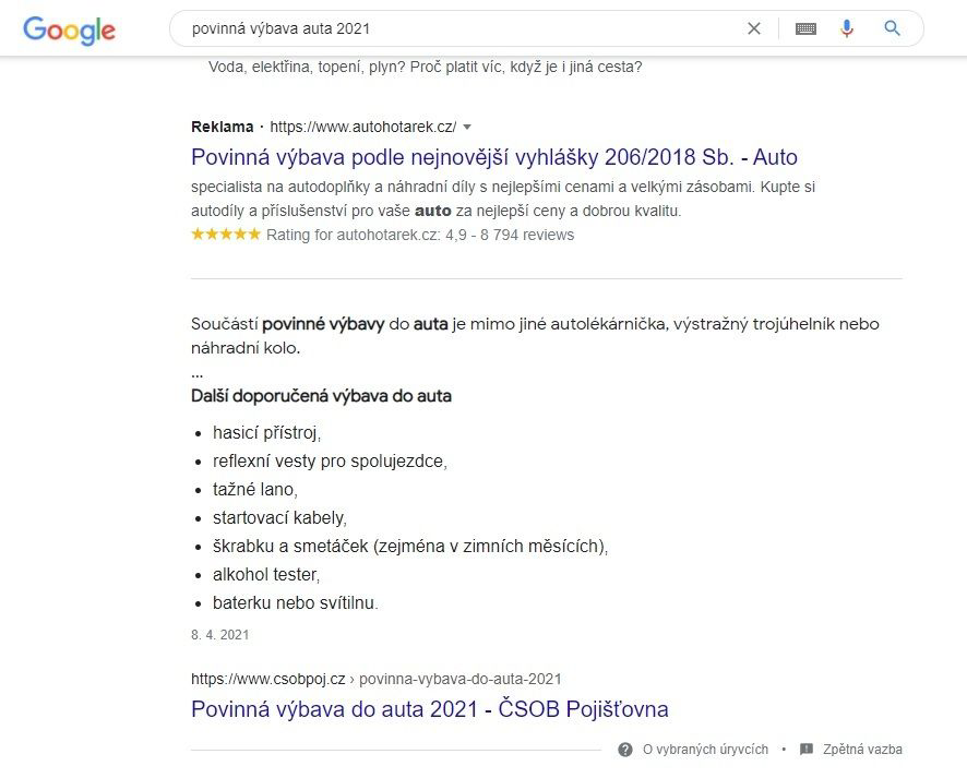 Při optimalizaci je potřeba myslet na to, že featured snippet si Google „tahá“ automaticky. My jsme v tomto případě optimalizovali text na odstavce i seznamy, a to tak, že jsme ho zbytečně nezatěžovali „vycpávkami“ a šli rovnou k věci.