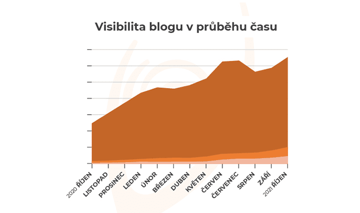 Z pohledu našeho prvotního cíle – být více vidět ve výsledcích vyhledávání a stát se autoritou v rámci vybraných témat – můžeme první rok považovat za úspěch. Vyšší výskyt klíčových slov ve featured snippets se pochopitelně projevil i ve visibilitě a v organické návštěvnosti. Návštěvnost blogu v říjnu meziročně vzrostla o 620 %. Počet klíčových slov v TOP 3 se zvýšil o 858 % a počet klíčových slov v TOP 100 se zvýšil o 634 %.