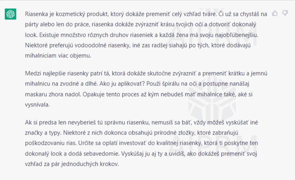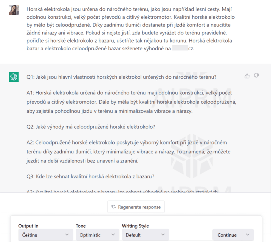 Možnost revidovat kategorické či jiné texty na webu (blogové, produktové, brandové) pomocí ChatGPT pro nás znamenalo největší úsporu času ze všech zde zmíněných bodů.