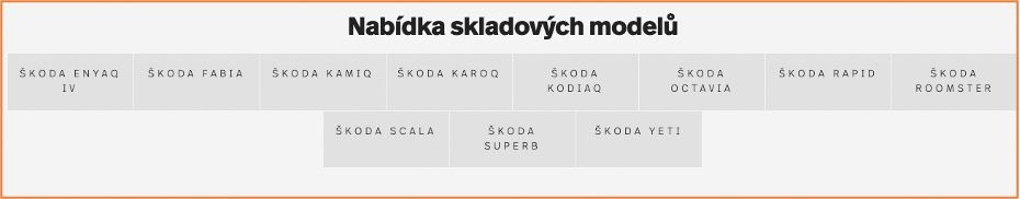Z dílčích nabídek konkrétních vozů byl dále vytvořen rozcestník, který odkazuje na modely dané značky. Tedy na každé produktové stránce vozů značky Škoda je vytvořen rozcestník modelů: