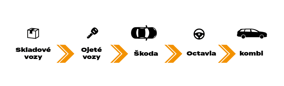 Pevné pořadí parametrů si uvedeme na příkladu, kdy se uživatel nachází na stránce s ojetými auty. Nejprve klikne na značku, následně na model a poté volí karosérii.