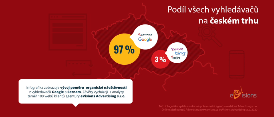 Infografika: Podíl vyhledávačů Google a Seznam na českém internetu #2020