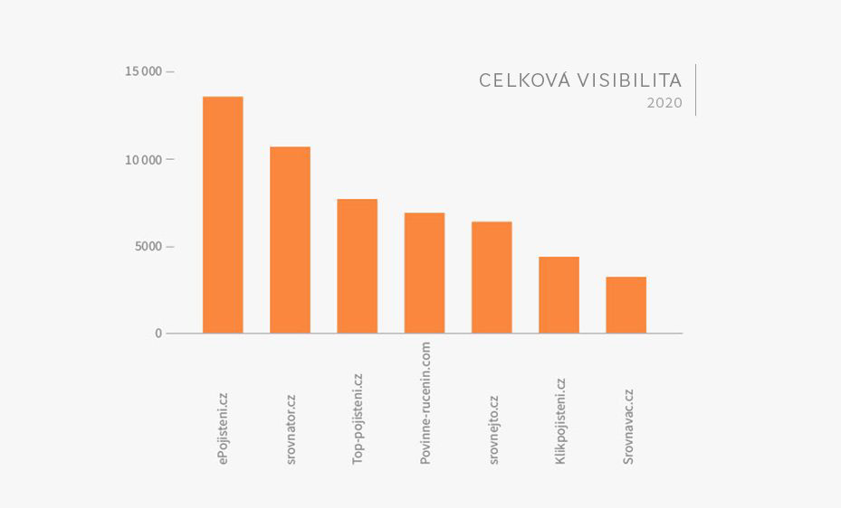 Pokud dáme tato data do kontextu ostatní konkurence, tedy hlavně srovnávačů, které nabízejí podobné služby, tak má ePojisteni.cz nejvyšší viditelnost a zobrazuje se na nejvíce klíčových slov.