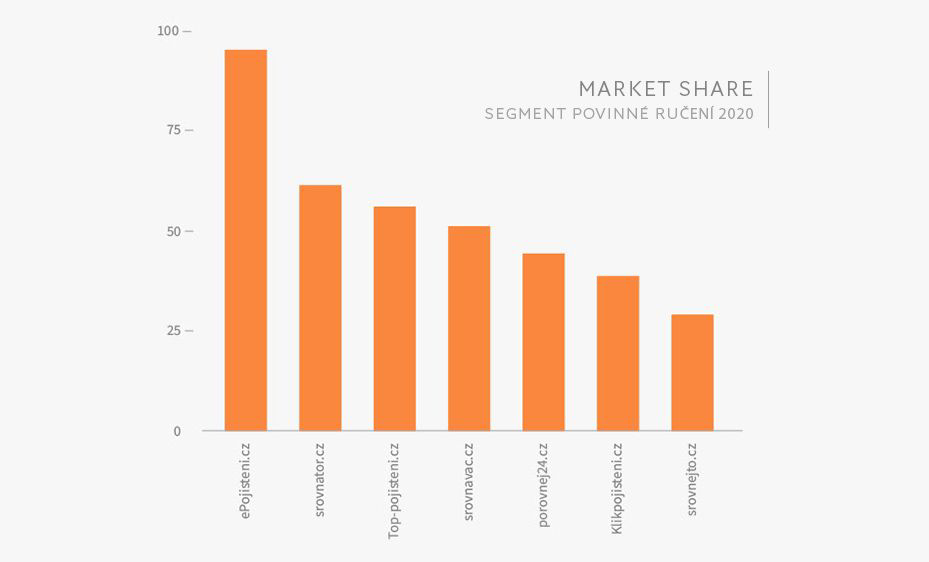 Pro daný dataset, který přináší největší obchodní potenciál a obsahuje okolo 200 klíčových slov, má ePojisteni.cz market share 96 %, a je tak dominantním hráčem na trhu s povinným ručením.