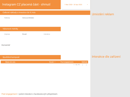 Druhá dílčí část reportů obsahuje informace o placené propagaci. Stejně jako u organické části je i tato sekce rozdělena na několik sekcí. Jak již bylo napsáno výše, tento článek popisuje základní report, který následně přizpůsobujeme dle požadavků klienta. Proto tuto část berte s rezervou, protože je u většiny klientů odlišná.