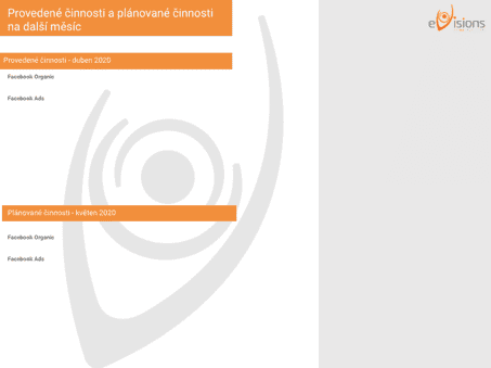 Neméně důležitou částí reportu je poslední slide, ve kterém klienta informujeme o aktivitách, které jsme udělali v uplynulém období. Zároveň zde nastíníme orientační plán činností, které plánujeme dělat v následujícím období.