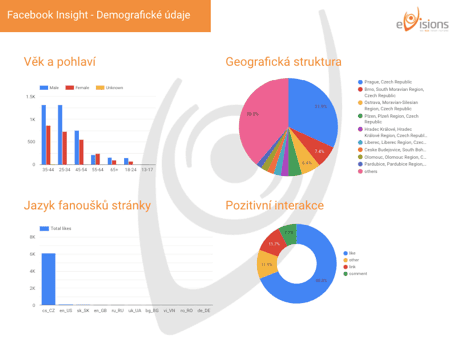 Na druhém slidu této sekce jsou uvedeny informace o fanoušcích stránky. Zjišťujeme, zda se nám daří získávat nové fanoušky, kteří jsou cílovou skupinou klienta. Konkrétně jsou zde uvedeny informace o: