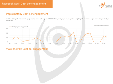 Druhá část informuje klienta o vývoji ceny za interakci v uplynulém měsíci. Tento slide je pro nás důležitý z toho důvodu, abychom získali informaci o příspěvcích, které má v budoucnu smysl propagovat. Pokud uvidíme, že cena za interakci je nad námi akceptovatelnou částkou, můžeme se detailněji podívat na daný příspěvek a snažit se identifikovat důvody, proč tomu tak bylo.