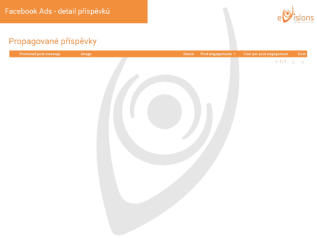 V následující části jsou tabulky s propagovanými příspěvky. V první tabulce jsou všechny propagované příspěvky a v druhé jsou příspěvky seřazené podle metriky Cost per post engagement. V tabulkách najdete následující metriky: