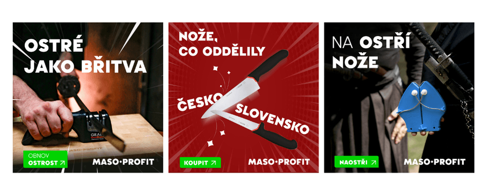 - rozšířili jsme kampaň o produktové bannery, které navazovaly na samurajskou tematiku a ukazovaly hlavní produkty této kampaně: nože, brus a ostřič nožů,
