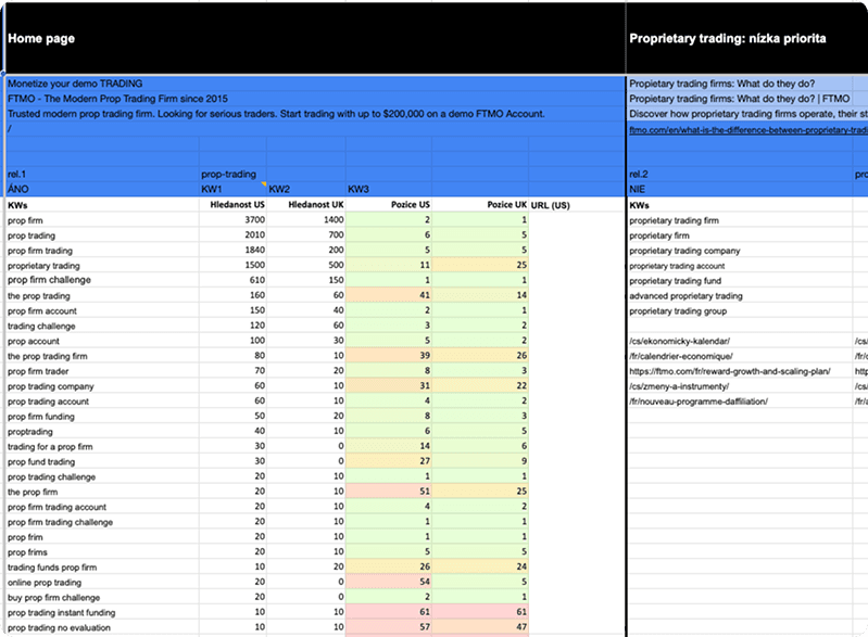 Klíčová slova rozdělíme, doplníme hledanost, konkurenčnost a pozice.