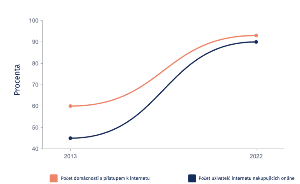 Rozdíl mezi rokem 2013 a 2022 je více než 30%.