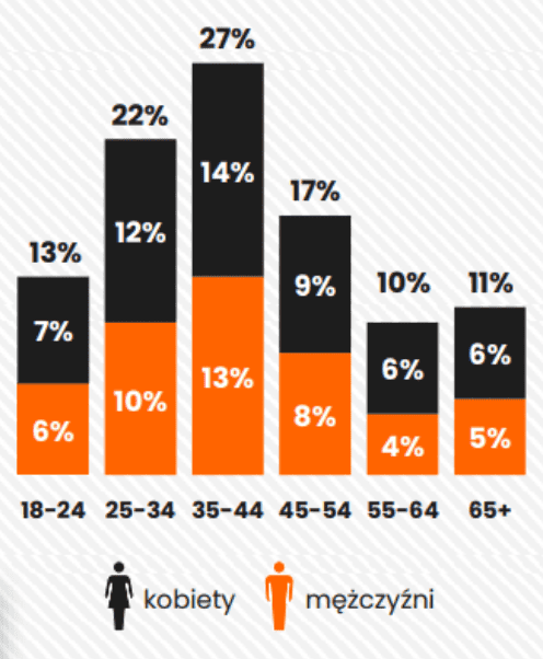 Musím vyjasnit, že celkově 54 % online nakupujících na Polském trhu jsou ženy a 46% muži.
